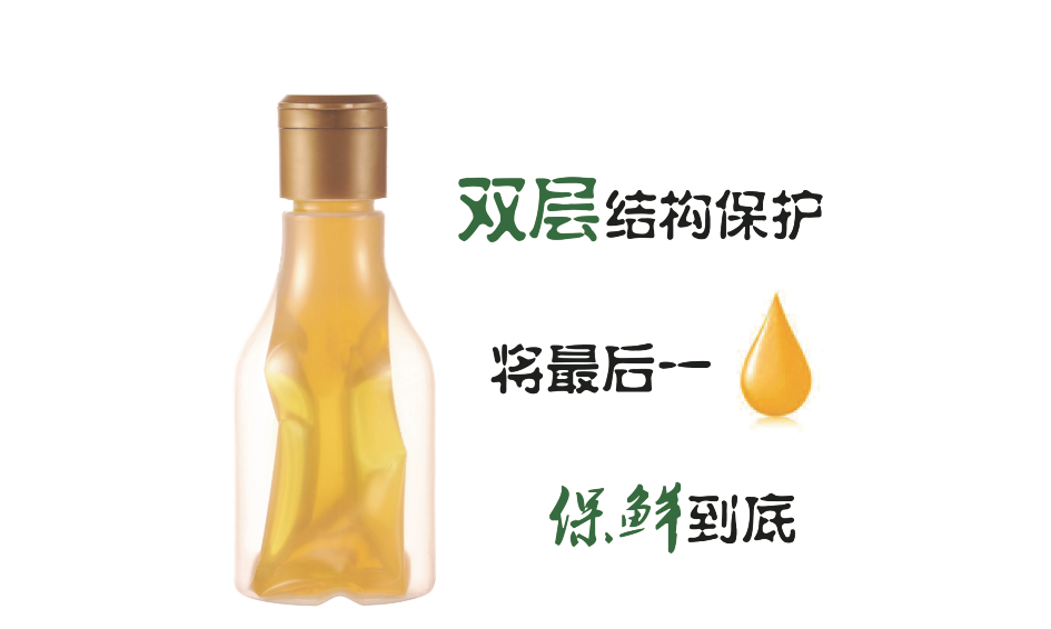一流的企业做标准 二流的企业做品牌 三流的企业做产品 瓶中瓶结构分析: 瓶身:内胆材质为LDPE-EVOH-LDPE,让内容物不添加色素防腐剂即可保存一年到两年、瓶身最外层采用较透明的PP层用来作为支撑结构。 盖子:特殊设计的单向阀盖。使内胆中的空气只能由胆内到胆外且不能反向流入,从而形成负压,随着内容物的取出内胆最终变为薄而扁的内袋竖立于瓶身中。 瓶身与瓶盖的完美搭配,使得内容物从开封到内容物取尽,色香味始终保持一致。 (尤其对氧气特敏感的内容物,单次用量少,开封后使用周期长的产品)瓶中瓶让开封后的内容物依然受到全程保护。)